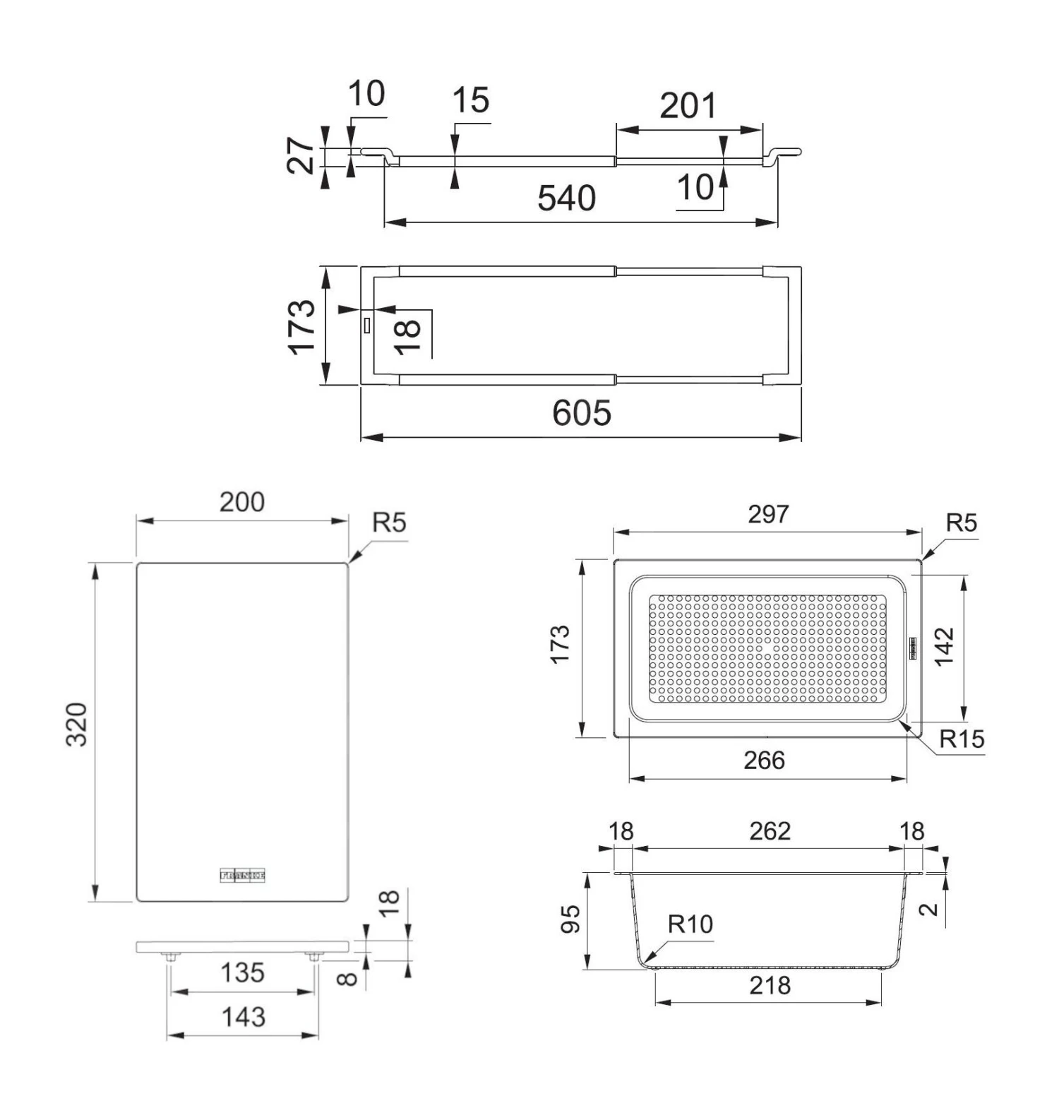- 1 support réglable, peut être adapté à la longueur / à la largeur de l’évier (dimension jusqu’à 540 mm)