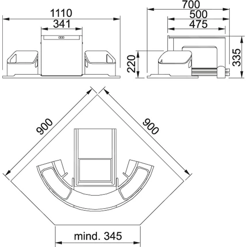 - meuble d’angle bas à partir de 900 mm x 900 mm ou 1050 x 1050 mm