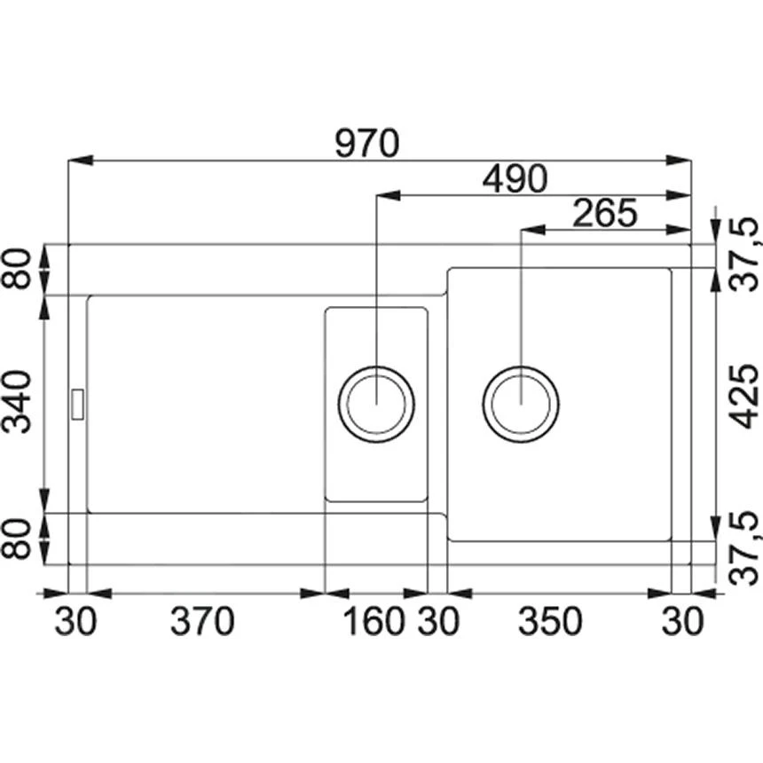 Dimensions de grand évier : 350 mm