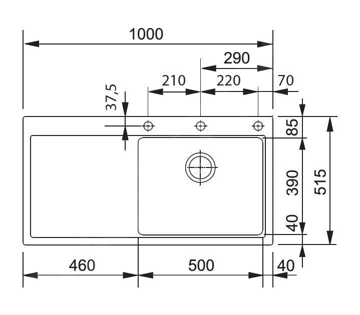 Évier de cuisine MTG 611/7, égouttoire à gauche