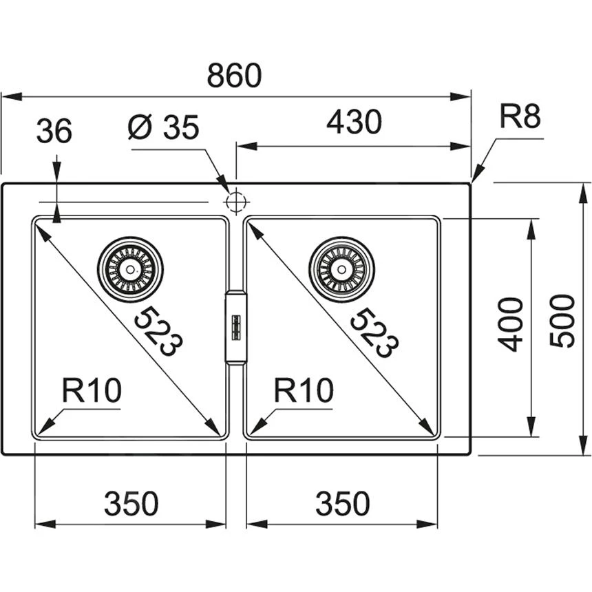 - trou pour la robinetterie de 35 mm de diamètre